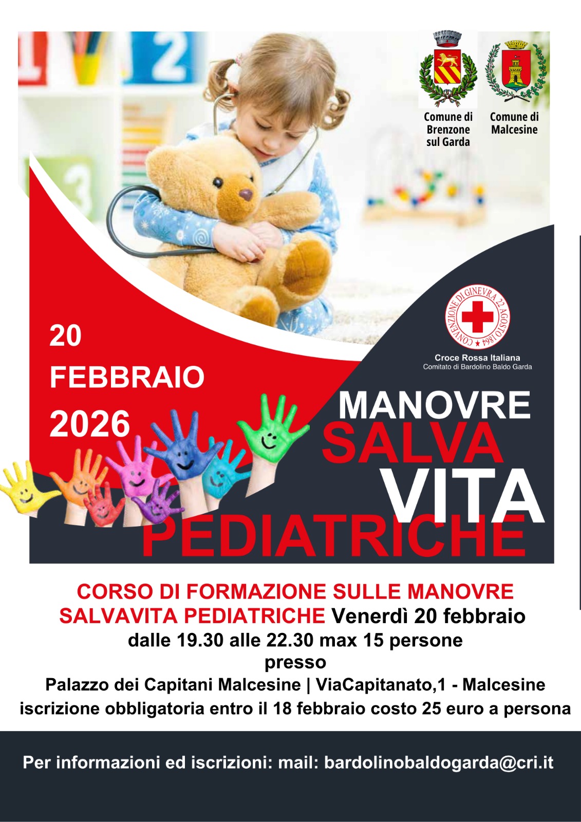 Le Amministrazioni di Malcesine e Brenzone sul Garda, in collaborazione con Croce Rossa Italiana – Comitato Baldo Garda, organizzano un corso formativo di 3 ore dedicato alle manovre di disostruzione delle vie aeree nei bambini.