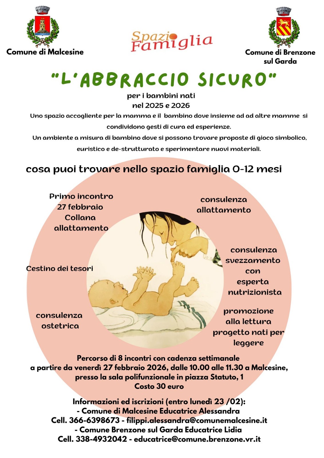 Riparte un nuovo ciclo di “Abbraccio Sicuro”, un percorso dedicato alle mamme con bambini da 0 a 12 mesi, pensato per incontrarsi, condividere esperienze e vivere insieme preziosi momenti di cura e confronto.